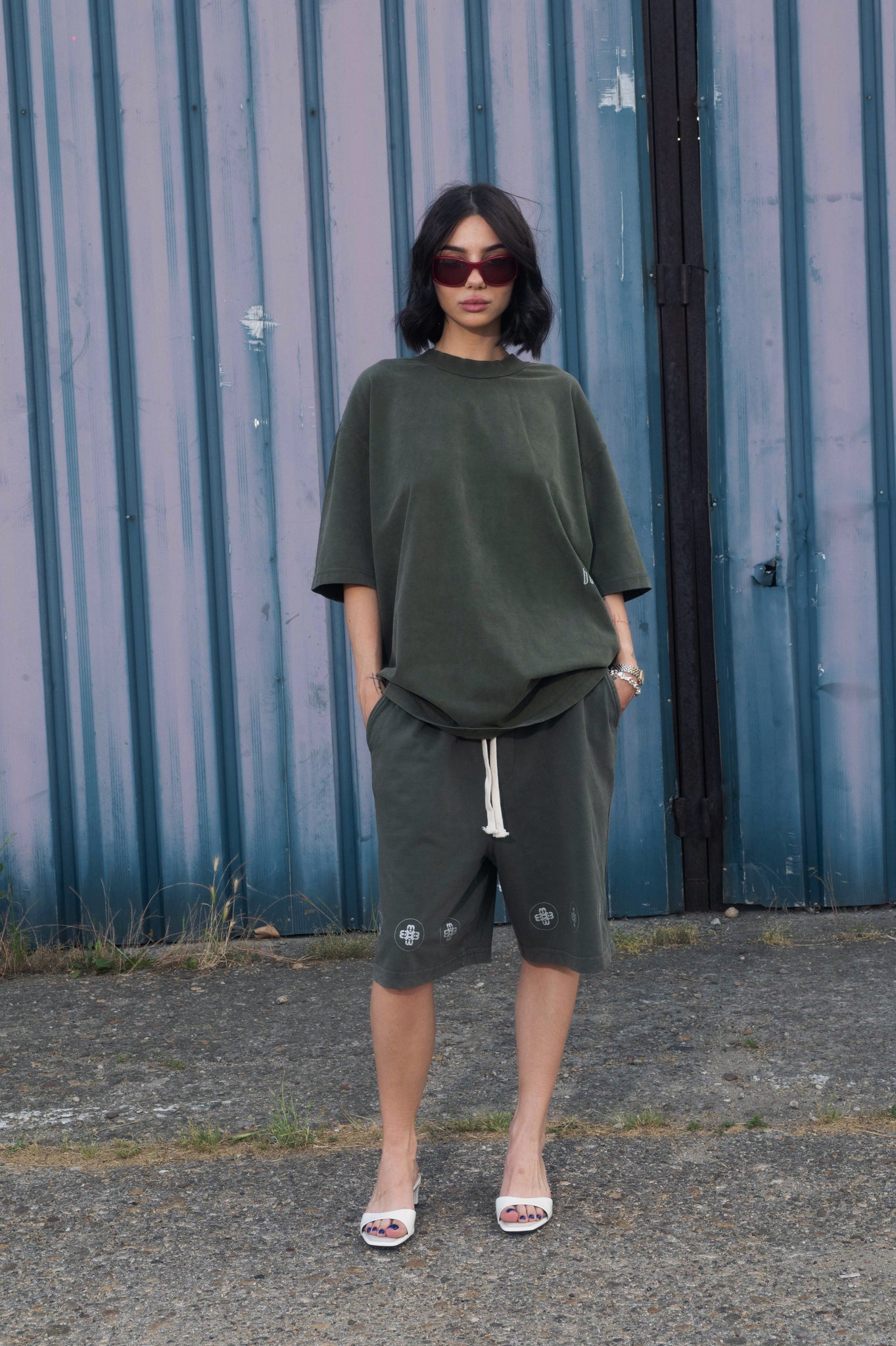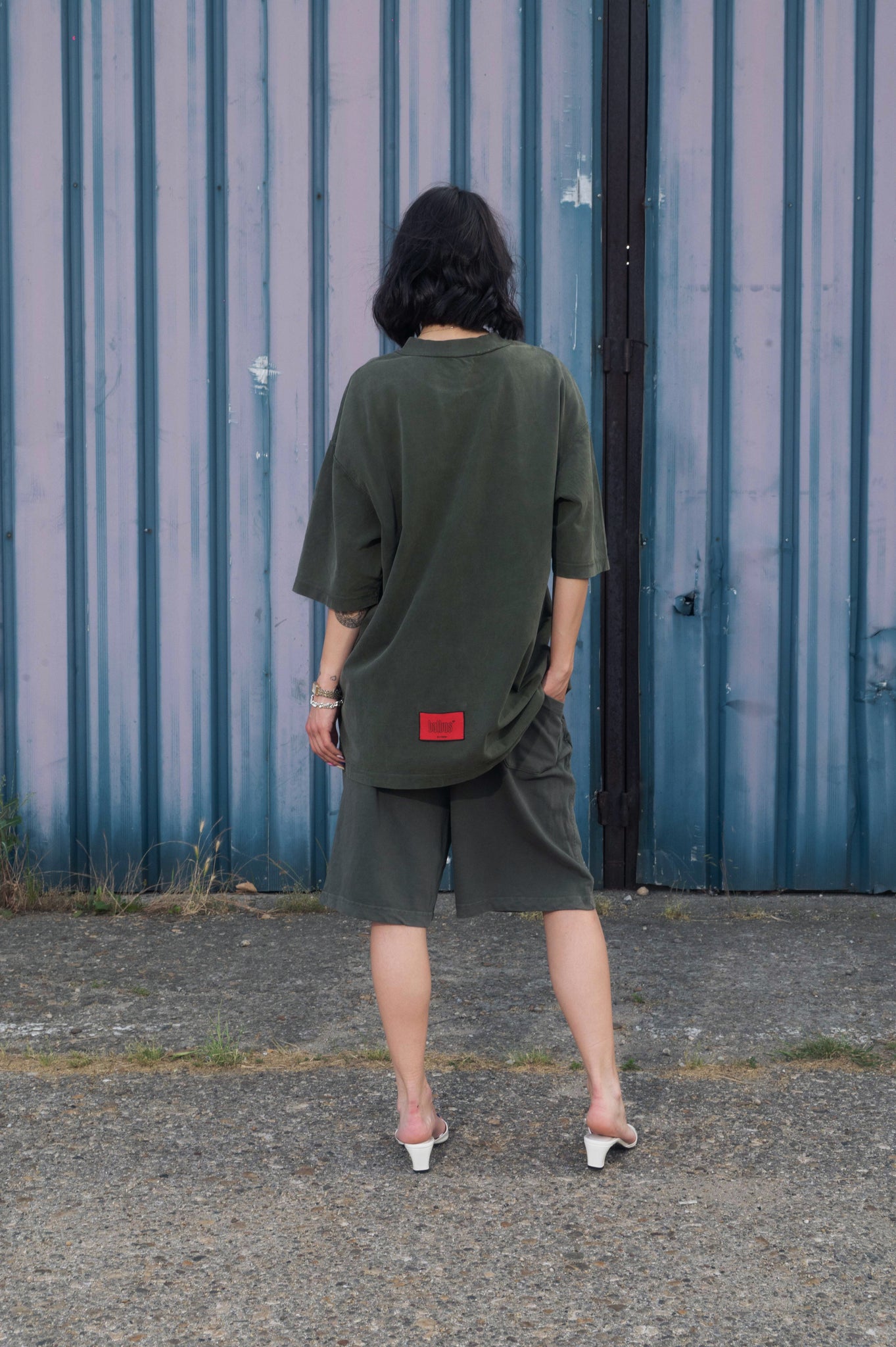 UNISEX Boxy fit with dropped shoulders. Crafted from 260gsm premium breathable cotton, vintage-washed and dyed in Portugal. Features Chrome ''balbus'' signature text screen printed on the left/front side and embroidered Logo patches stitched at the lower back.